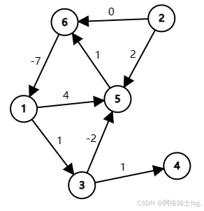 注意:有向图中不一定所有点都能找到负环(假设图中存在负环),例如从上图中