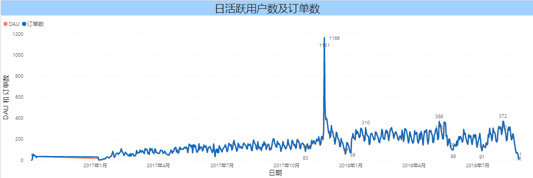 FROM (SELECT d '日期',count(DISTINCT customer_unique_id)DAU FROM order_detail GROUP BY d ORDER BY d)a