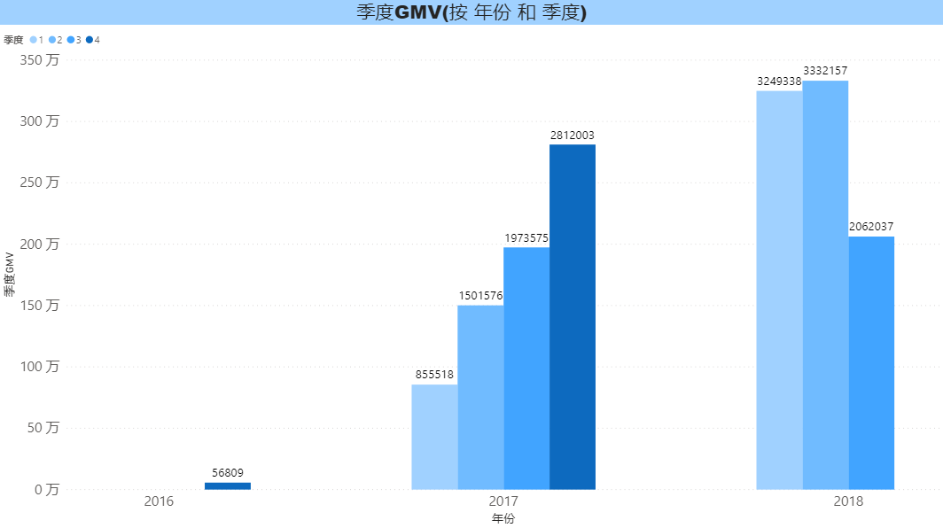 SELECT y 年份,q 季度,round(sum(order_value),0) as 季度GMV