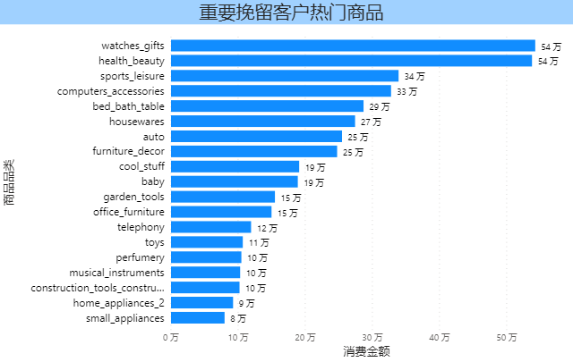 #一般发展客户、一般挽留客户、重要挽留客户、重要发展客户、重要价值客户的热门商品品类