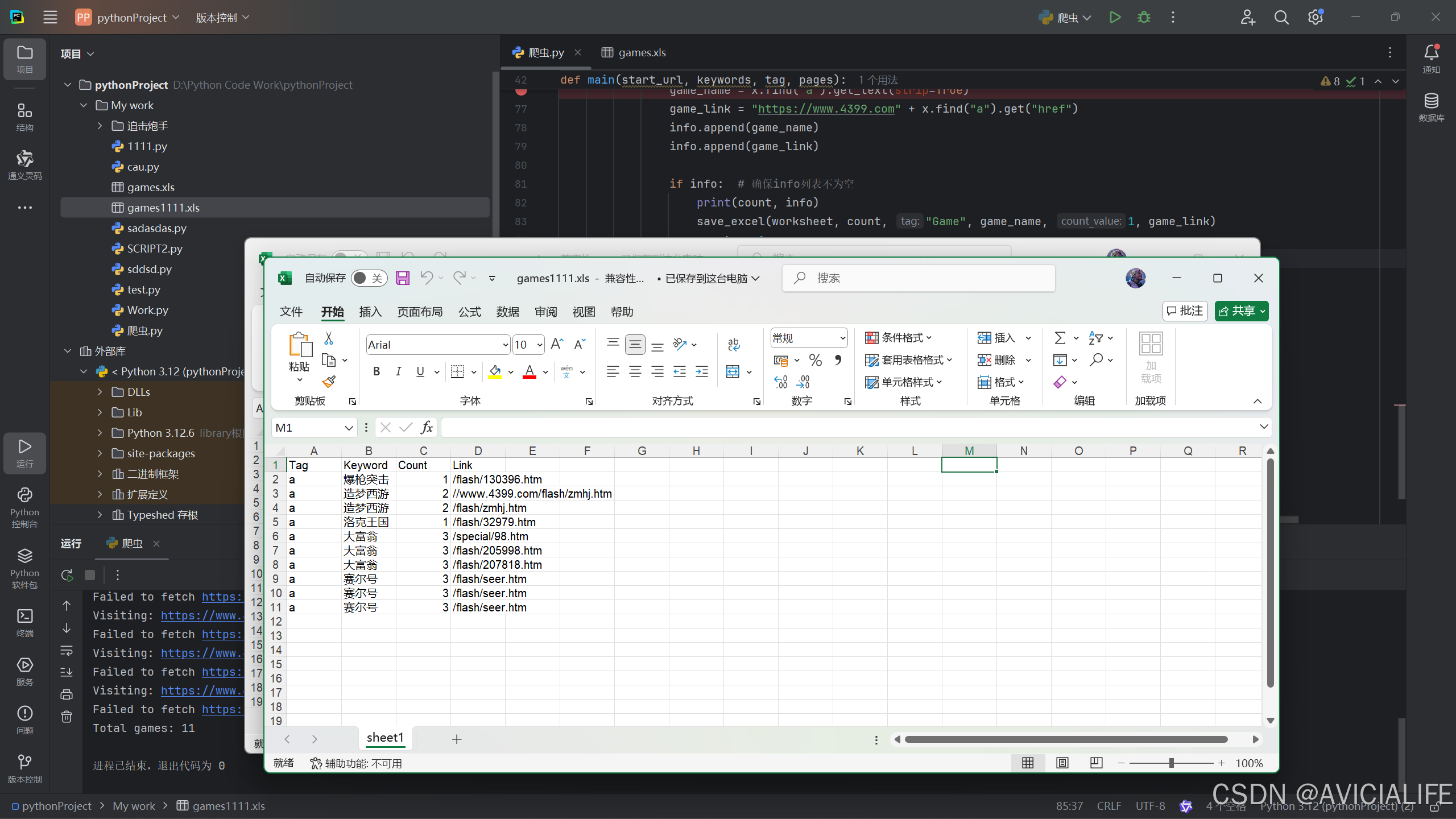 save_excel(worksheet, count, "Game", game_name, 1, game_link)