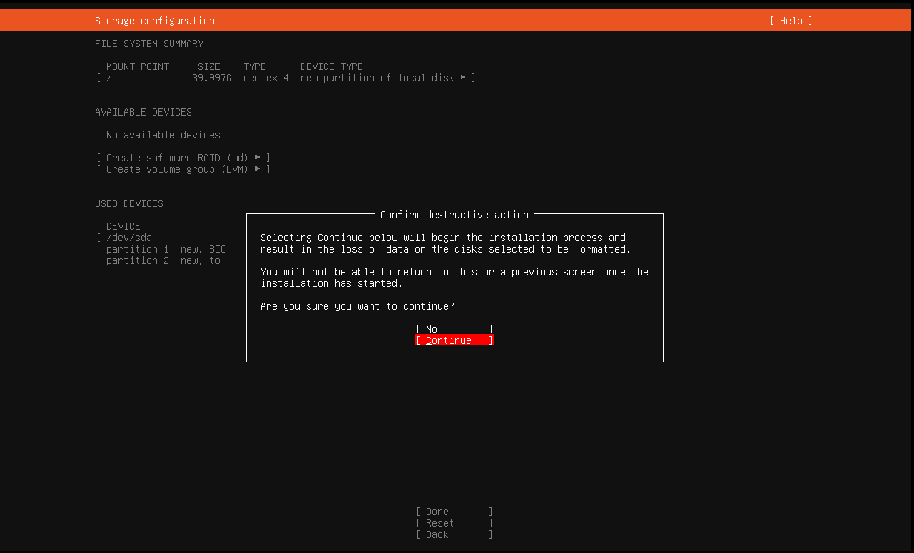 选择磁盘布局:将此方法擦除整个硬盘并自动对驱动进行分区,(可以设置lvm并且使用LVKS加密)自定义存储布局:供高级用户手动选择配置存储后选择并继续
