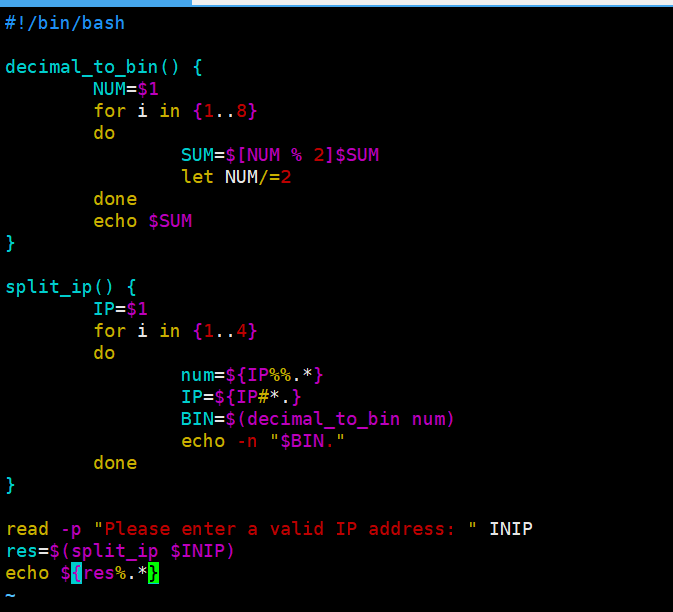 01将一个点分十进制格式的IP地址转换成点分二进制格式。比如 255.255.255.255 --> 11111111.11111111.11111111.11111111