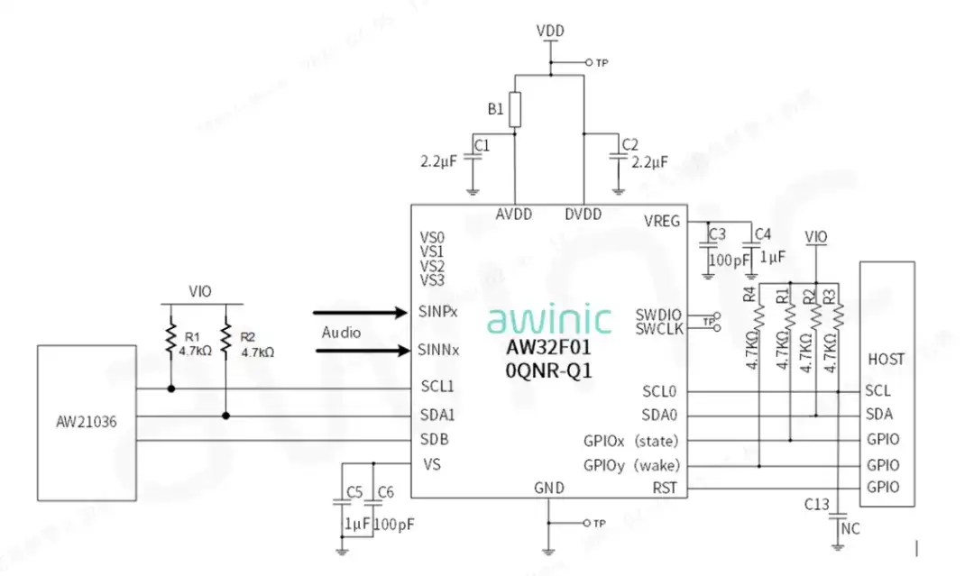 图2 AW32F010QNR-Q1+AW21036QPY-Q1参考设计