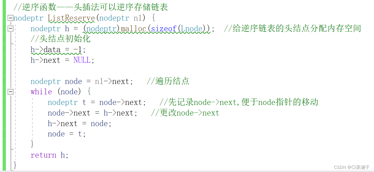 nodeptr ListReserve(nodeptr n1); //链表逆序
