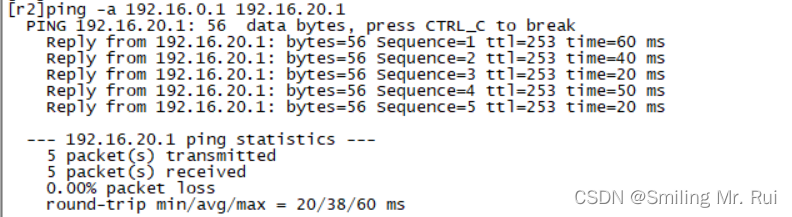 [r5-GigabitEthernet0/0/0]ip add 192.16.160.2 19