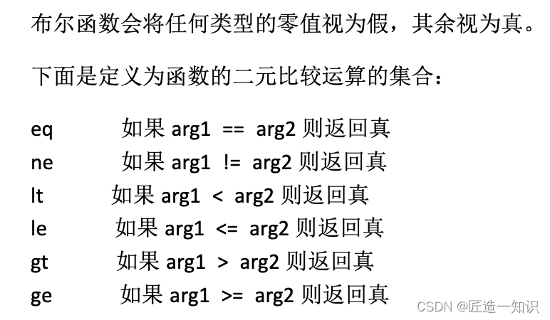 这里就是在判断时候写法不一样,本质上都是一样的使用,只是使用了eq、ne、lt 、le、gt 、ge 等代表了【== \!= \<\<= \>\>= 】;这里有一个要注意⚠️的一个就是布尔值 判断时候零值返回false假,其余的值都是true真。