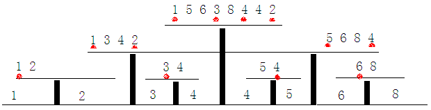 例如我排完序12344568,找到中间值4,那么我第一个进入树的值1,比4小,那么1就是左子树第一个,他和他之前进入左子树点的个数就是1(他自己),假设我们用一个数组num[][]来存,num[1][1]就是1,然后原数组下表2的位置是5,比4大那么他就进入右子树第一个,那么他之前还是只有一个1在左子树里,num[1][2]还是1,然后第三个位置6比4大,右子树第二个,num[1][3]=1、、以此类推,线段树的标准递归建树。