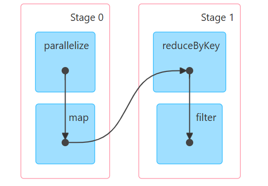 reduceByKey→filter(Shuffle后新阶段) -
