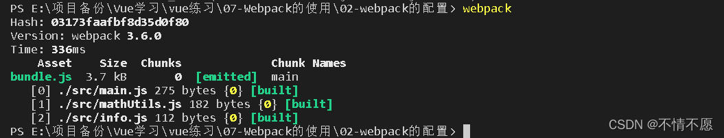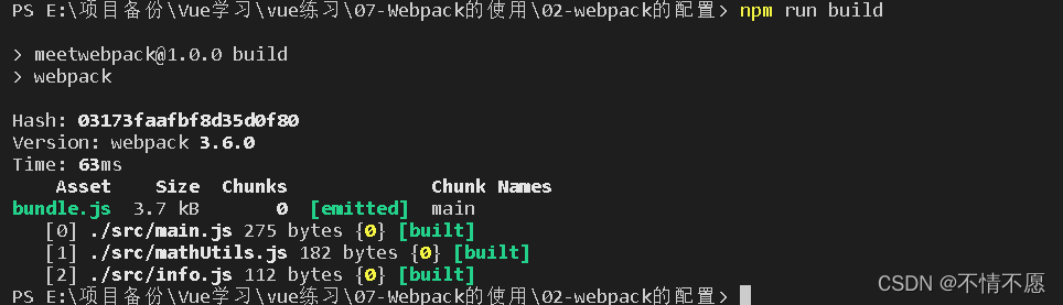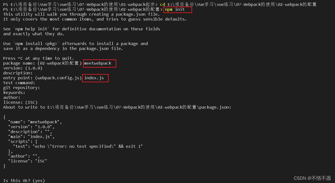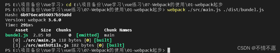 打开终端: cd E:\项目备份\Vue学习\vue练习\07-Webpack的使用\01-webpack起步