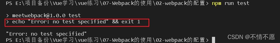 等价于输入"test"后面的内容并执行: echo \"Error: no test specified\" && exit 1