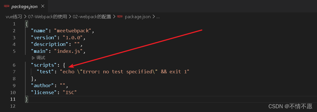 找到scripts脚本,如上图所示,当在终端输入npm run test时: