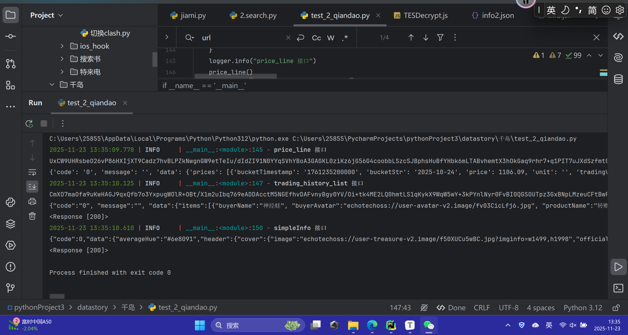 目标接口 : 折线数据和交易情况,经过我们破解加密之后发现无需登录也可以直接请求