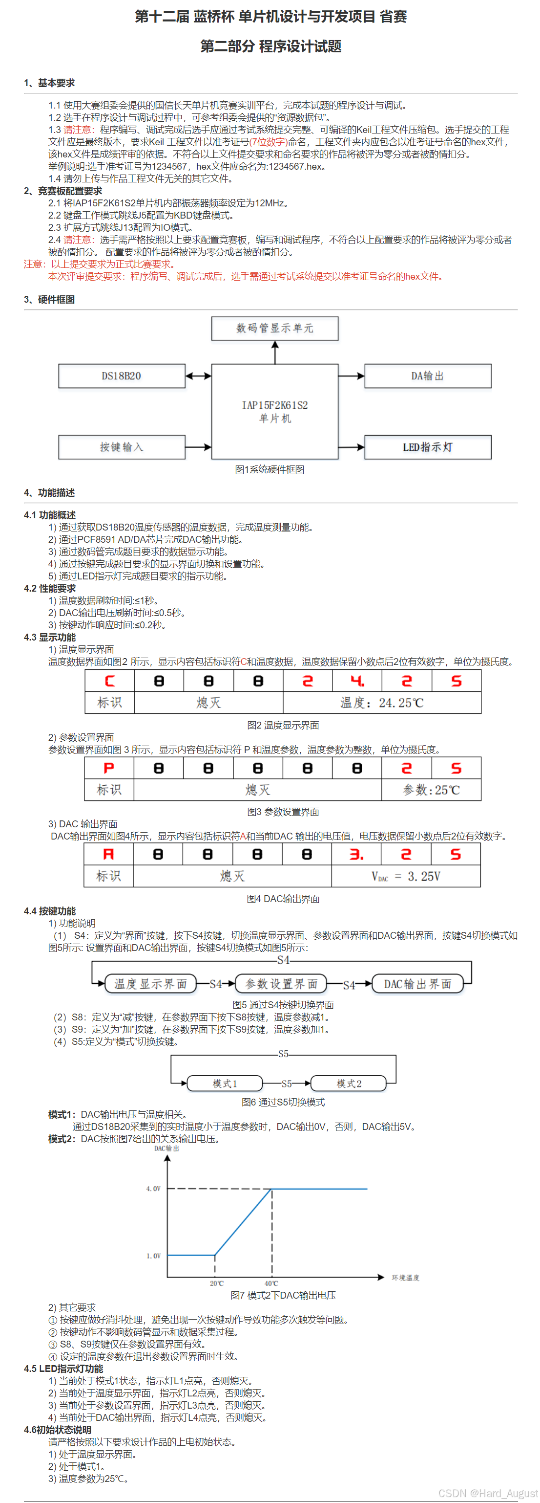 Init_System函数对系统进行初始化,包括关闭无关外设、点亮特定 LED、读取一次温度数据等操作。在主循环中,不断调用DisplaySMG_Info函数显示信息、Running_Mode函数执行工作模式逻辑、DS18B20_Read函数读取温度数据、Scan_Keys函数扫描按键。