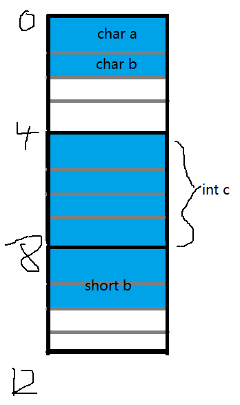 2) 结构体每个成员相对结构体首地址的偏移量都是成员大小的整数倍,如有需要编译器会在成员之间加上填充字节。