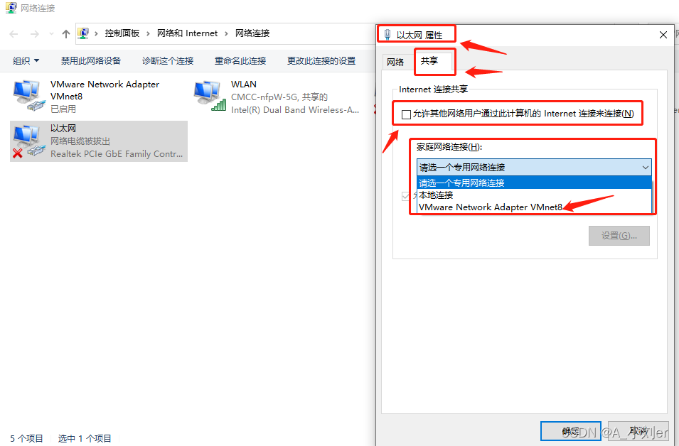 以及家庭网络连接未使用 VMware Network Adapter VMnet8