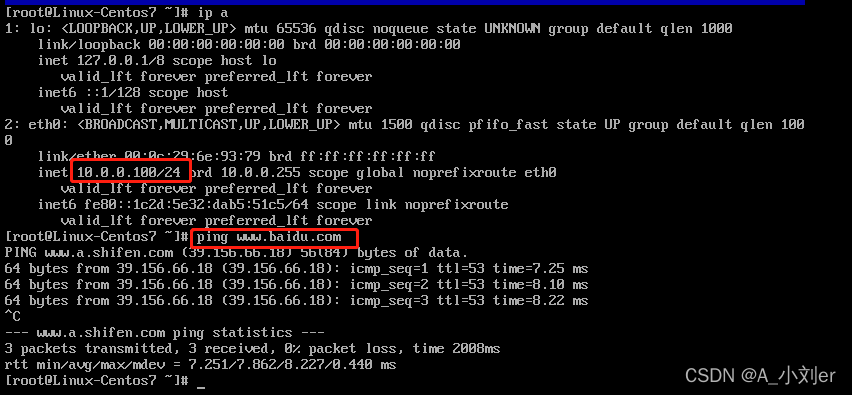 5. 查看网卡信息并ping www.baidu.com是否能够ping通
