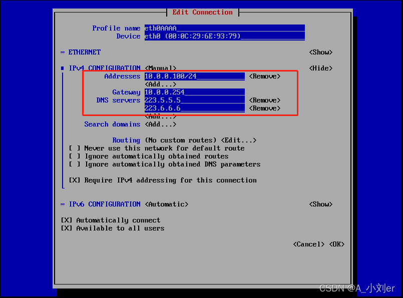 也可以在命令行输入nmtui 命令进行如下配置
