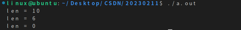 printf("len = %ld\n", len);//输出 (因为之前向后10 + 'a' = 11,因此现在结果为6)