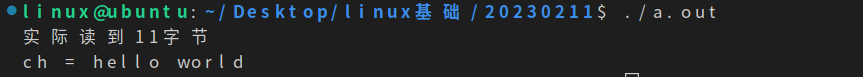 ④返回值:成功返回实际读到字节数,失败返回-1 ,读到文件末尾返回0