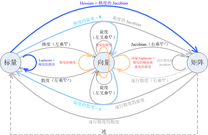 梯度、散度、旋度、Jacobian、Hessian、Laplacian 的关系图