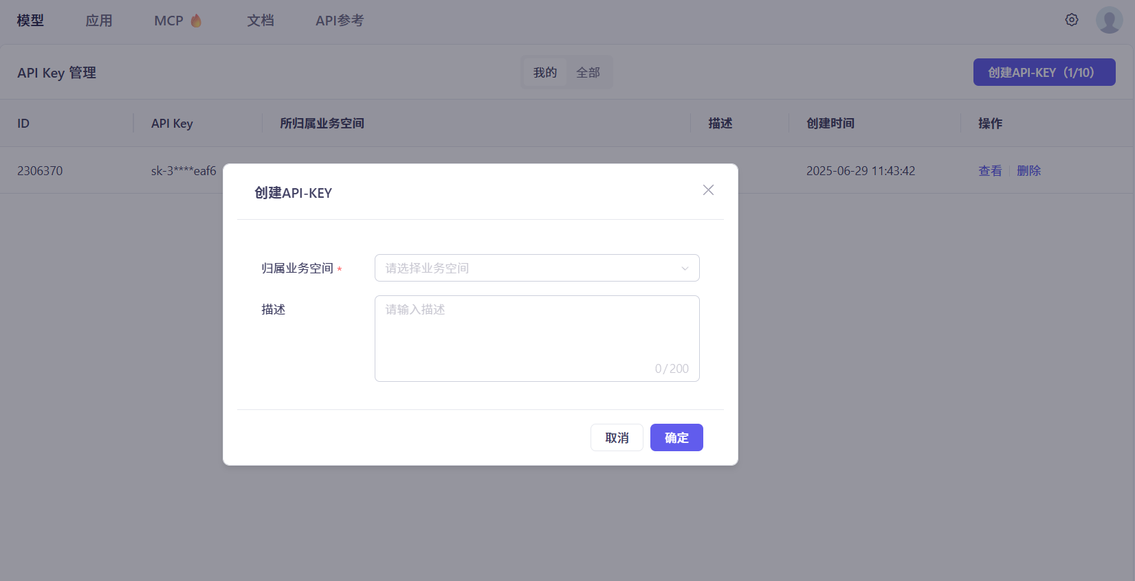 注:不同模型的api-key需要做个副本备存,以免忘记。因为有些模型的api-key只会出现一次用来复制。