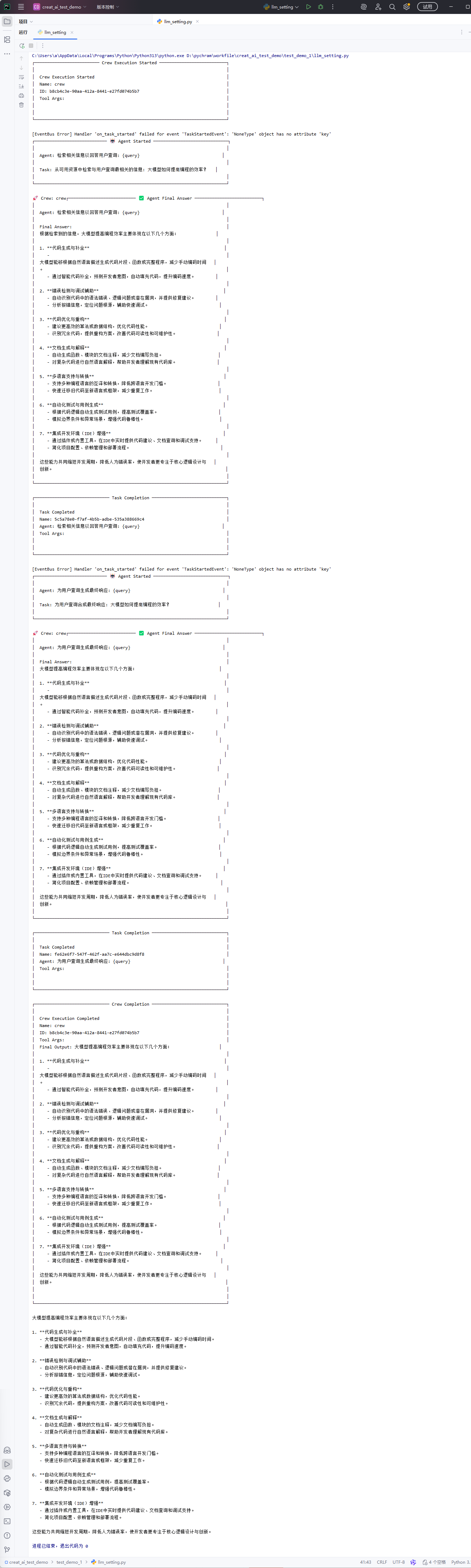 crew_output = crew.kickoff(inputs={"query": "⼤模型如何提⾼编程的效率?"})