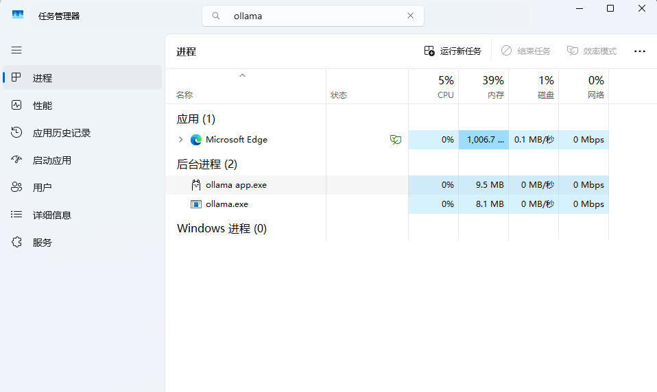 确保把任务管理器的ollama运行程序,和服务都先关掉。
