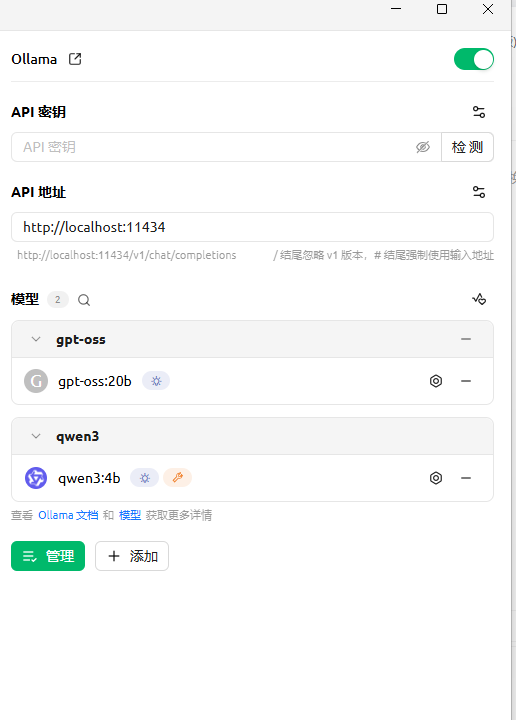 这里为了介绍这个问题,我们需要借助其他的软件调用ollama模型(注:是本地下载好的,而不是云端模型)