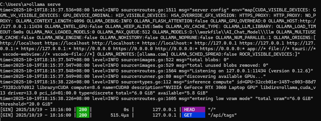 这里就说明一下,在做本地ollama模型调试运行使用的时候,需要打开ollama serve但是会导致出现端口冲突,原因是ollama客户端开启着,所以要关闭ollama客户端,但是关闭就会导致无法查找到本地已经部署好的模型问题。