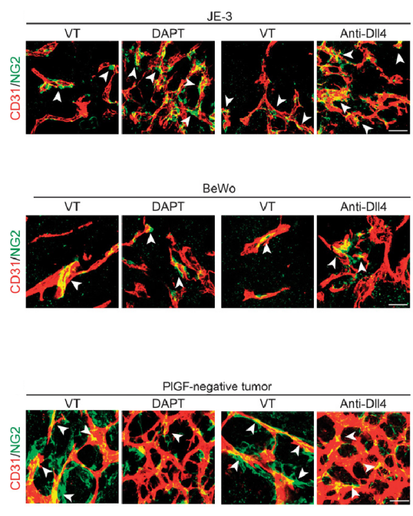 图 Dll4-Notch 抑制对高PlGF和低PlGF表达的肿瘤组织血管的影响存在差异[7]