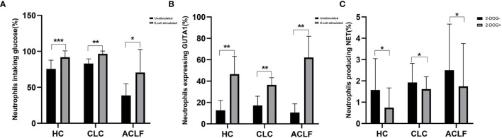 浙江大学的科研人员在上述研究中探讨了中性粒细胞在急性慢性肝衰竭(ACLF)模型中的作用,并研究了中性粒细胞的数量、表型、转录组和功能的变化与ACLF短期预后的关系。科研人员还发现上述模型中性粒细胞的吞噬、脱颗粒、NET(Neutrophil Extracellular Trap,中性粒细胞胞外陷阱)形成和细胞因子产生等功能存在异常变化。因此,实验人员探讨了代谢重编程是否能够逆转中性粒细胞的功能异常,在实验中使用了来自AbMole的2-Deoxy-D-glucose(2-DG,AbMole,M5140)抑制糖酵解[3]。