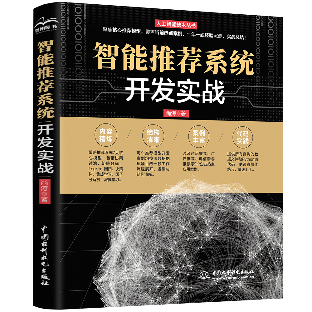 第4篇:通过行业真实案例,如广告点击率预测、金融产品精准营销、音乐推荐、基于客户生命周期的推荐等,深入浅出、循序渐进地介绍了推荐模型开发的全过程。
