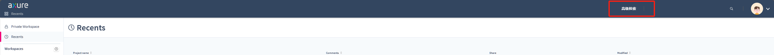 打开并刷新Axure Cloud在右上角会出现一个“高级搜索”按钮,点击即可跳转到Axurecloud高级检索插件页