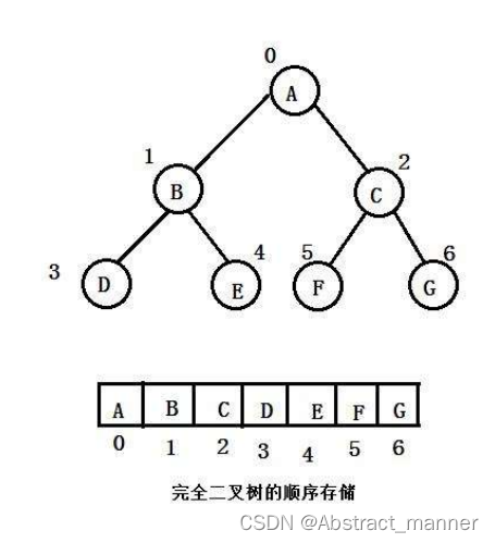 顺序结构存储就是使用数组来存储,一般使用数组只适合表示完全二叉树或满二叉树,因为不是完全二叉树会有空