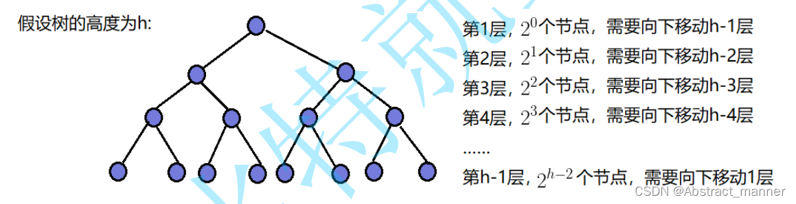 因为堆是完全二叉树,而满二叉树也是完全二叉树,此处为了简化使用满二叉树来证明(时间复杂度本来看的