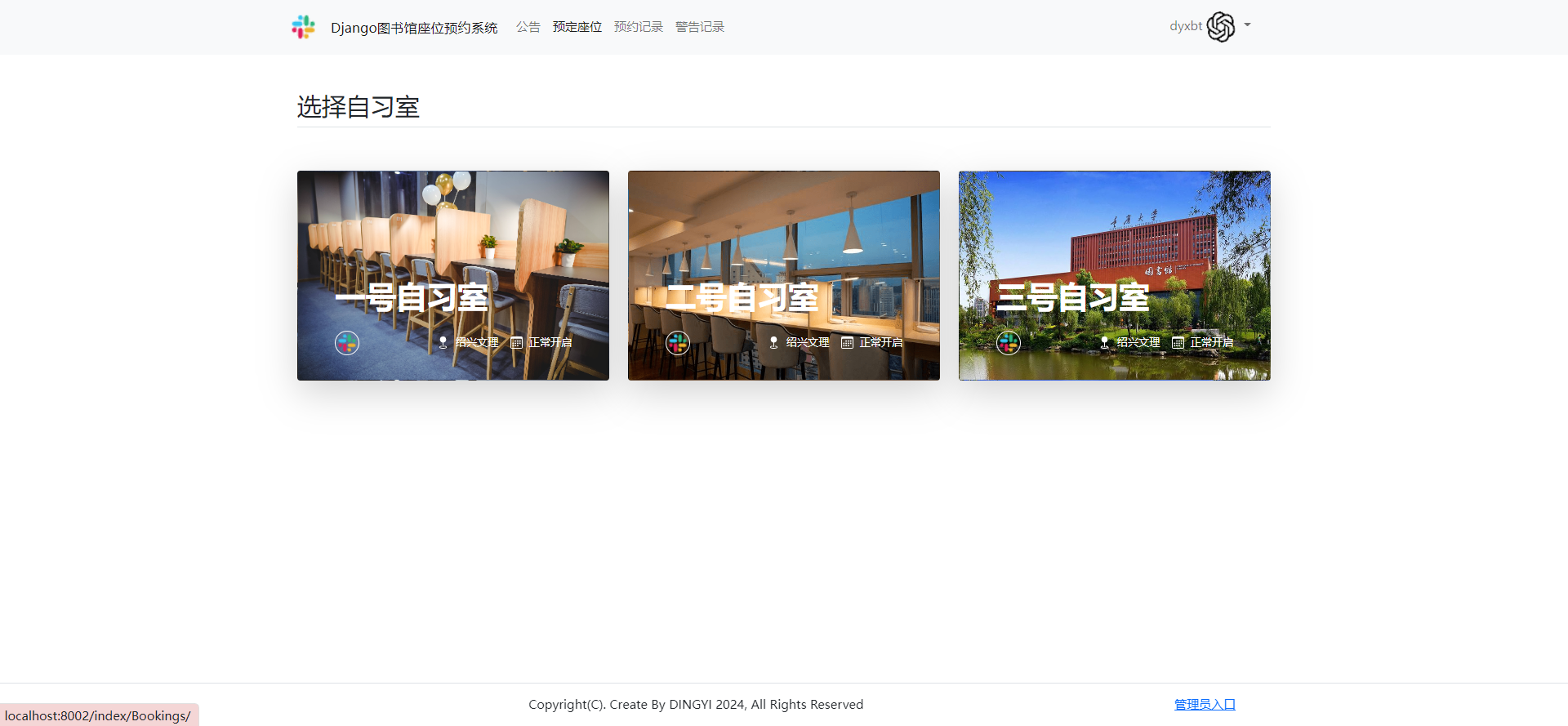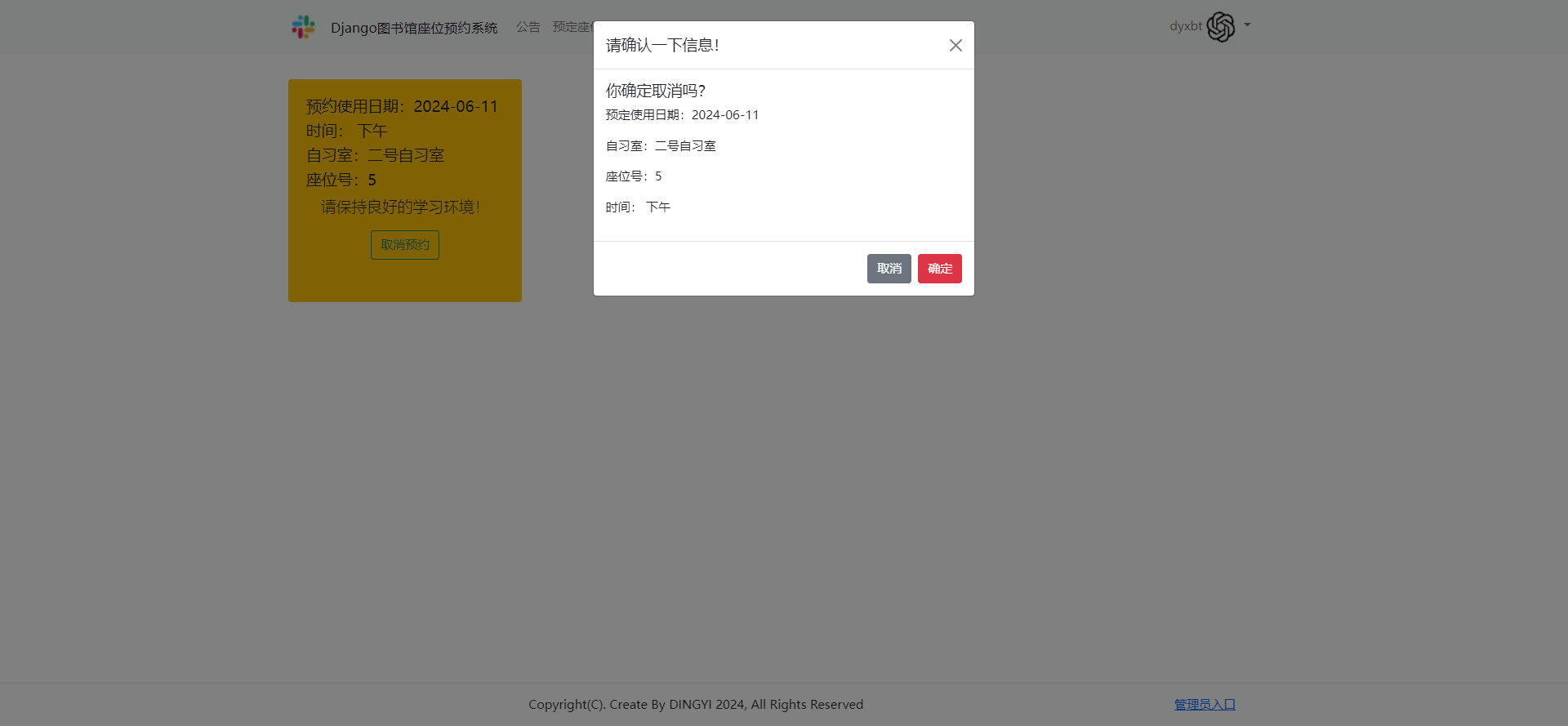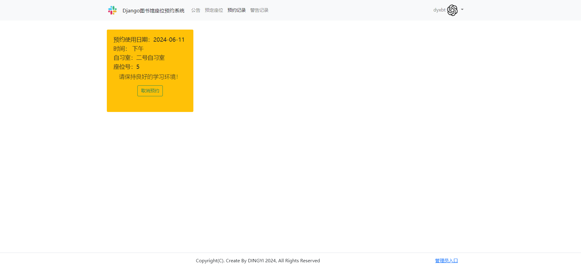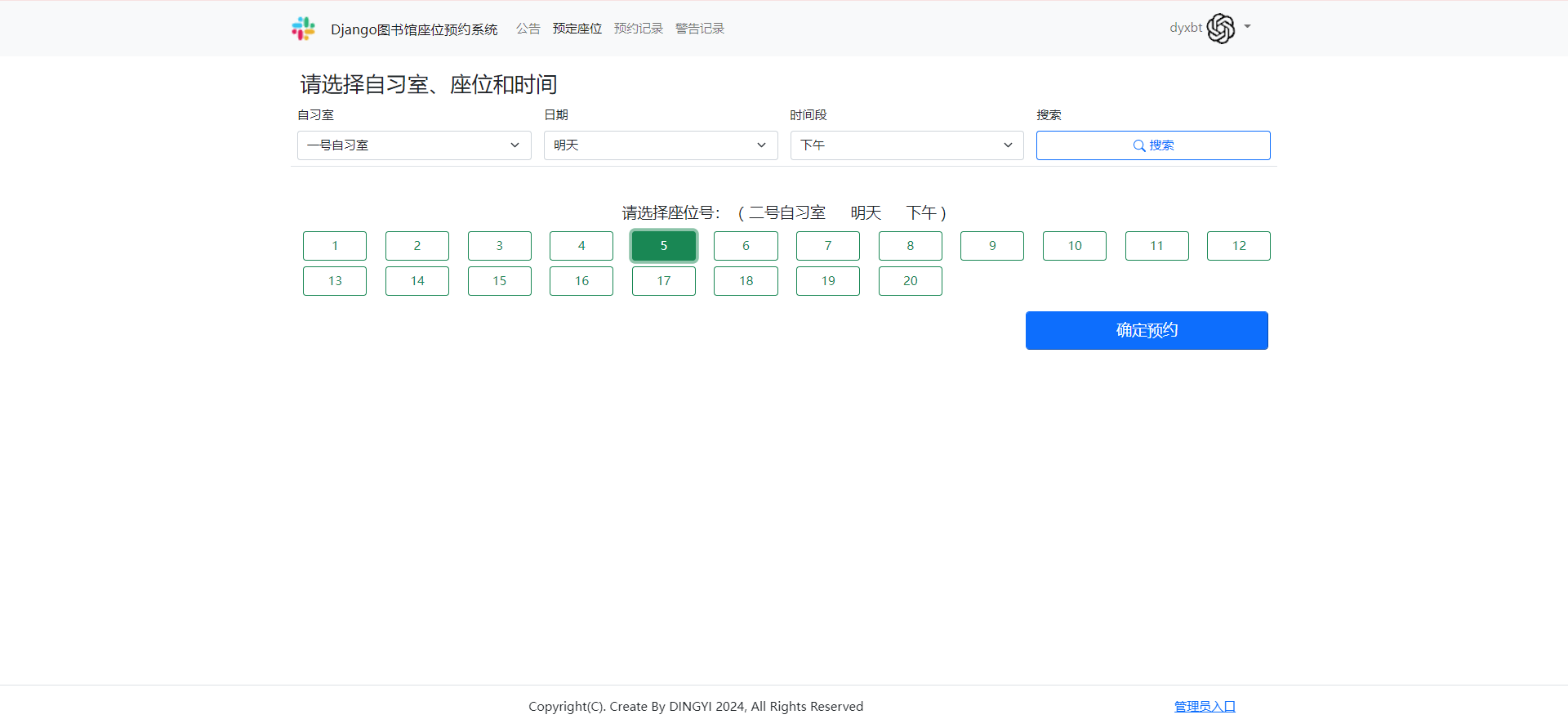 项目名称:基于Django的图书馆座位预约系统.