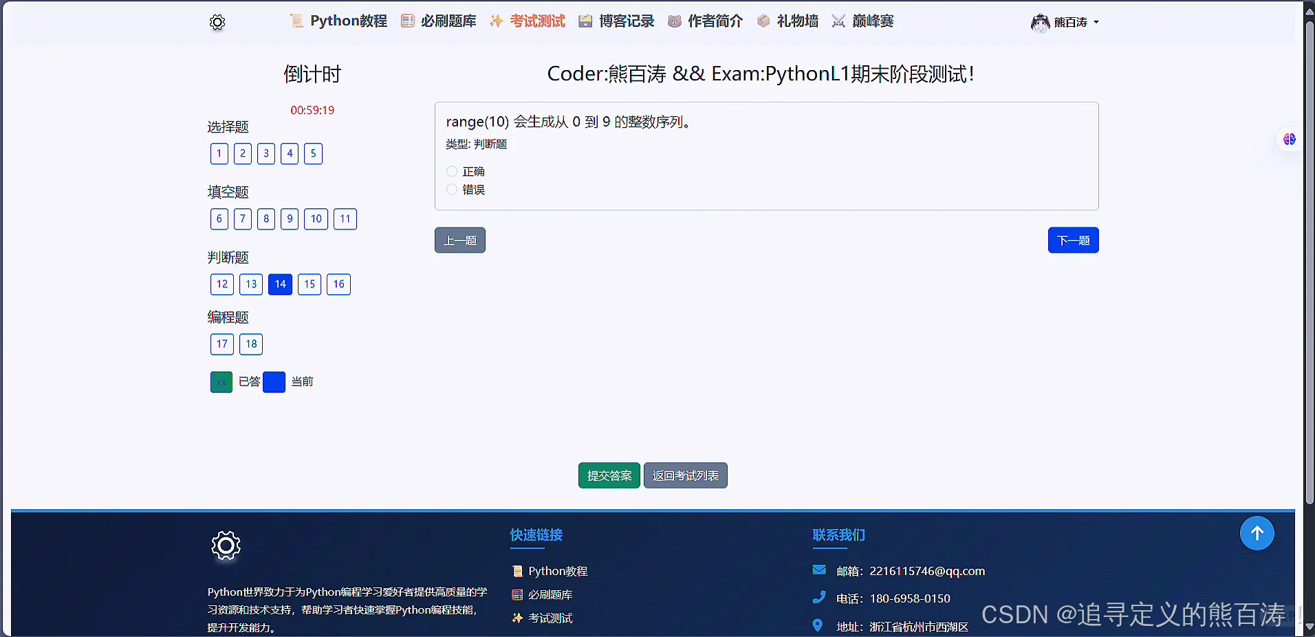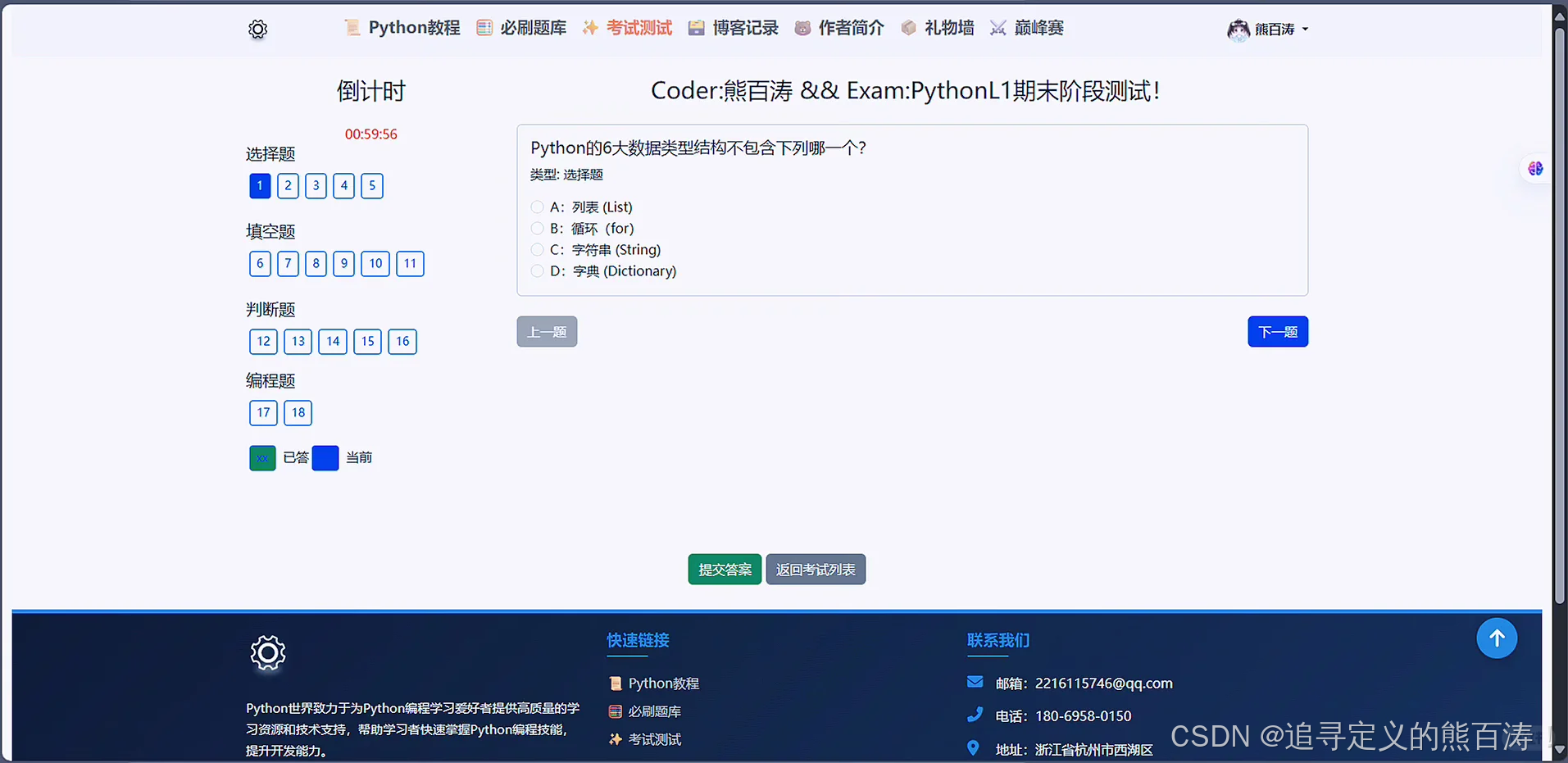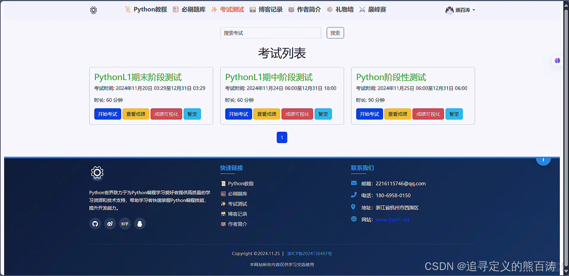📖 考试模块:有可以考试的内容,管理员可以设置考试的内容和时间以及有权限查看所有成绩,普通用户没有权限查看.