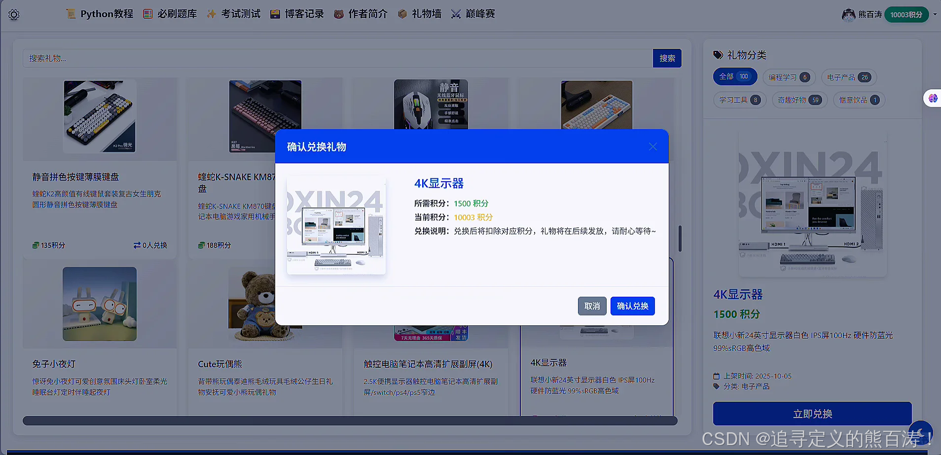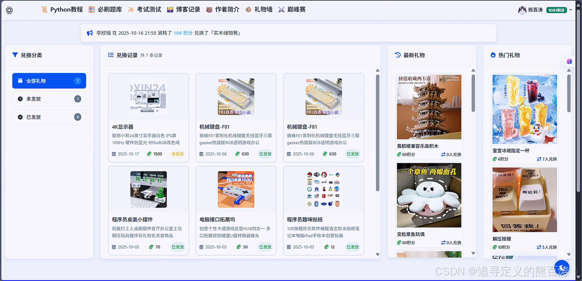 📖 礼物墙模块:用户消耗积分可以兑换礼物的.
