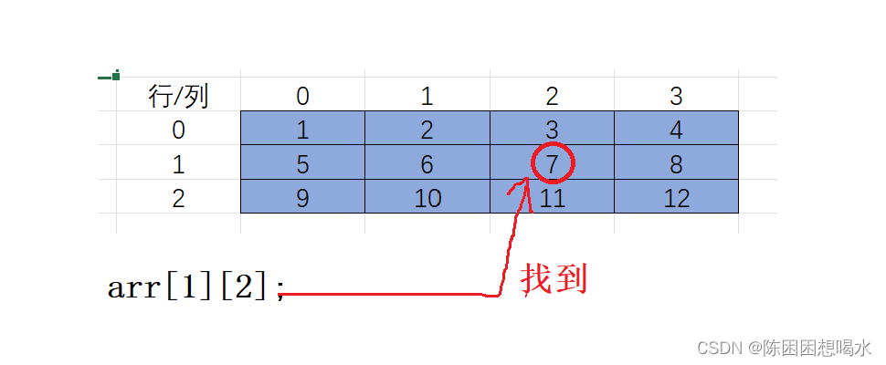 二维数组的访问也是通过下标来访问,行从0开始,列也从0开始;