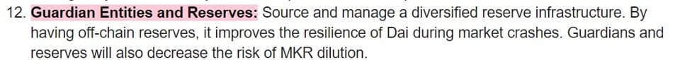 无独有偶,在经历过黑天鹅事件的 MakerDAO 同样也在之后 MIP 1 的 Problem Space 清单中提到了保管机构和储备(Guardian Entities and Reserves),希望能够购买并管理一个多元化的储备结构,并通过链下的储备,提高 Dai 在市场暴跌行情时的可靠性,同时降低 MKR 被稀释的风险。虽然没有明说如何执行或是是否执行,但为了增加储备以及预防流动性危机的初心可见一斑。