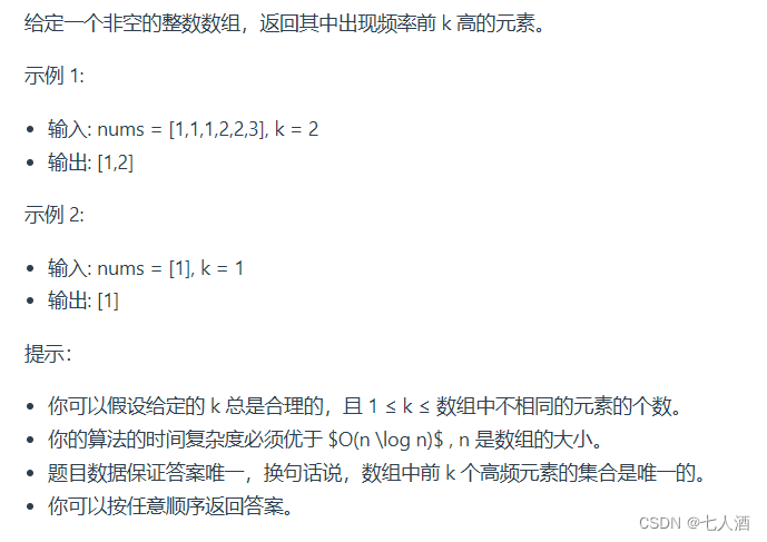 2、频率排序我们用小堆来实现,因为要统计最大前k个元素,只有小顶堆每次将最小的元素弹出,最后小顶堆里积累的才是前k个最大元素。