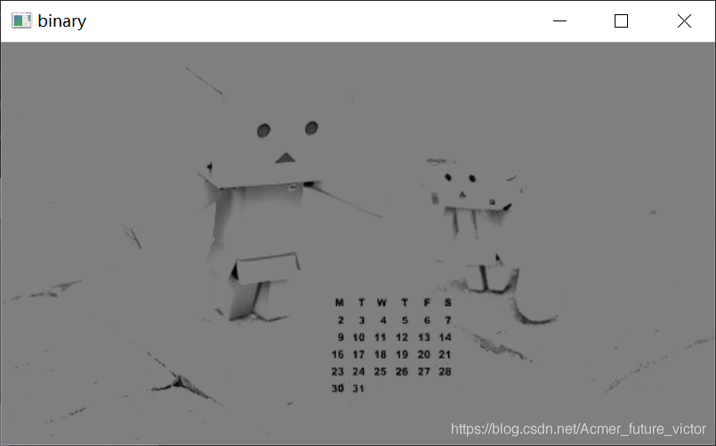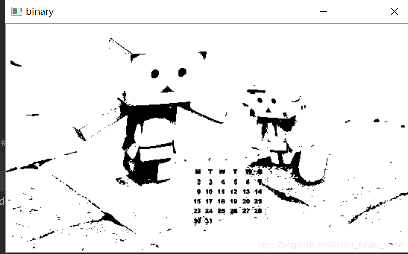 ret, binary = cv.threshold(gray, mean, 255, cv.THRESH_BINARY)