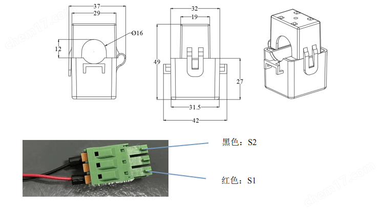 注:引线长度为 2 米 2*26AWG 护套线,线头压接冷压头(0510),在冷压头上接端子,端子型号为:(PLTB1.5-03-B-3.81-SP2 SP0)