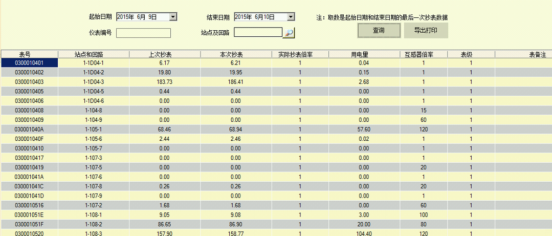 提供单表抄表历史记录查询 | |