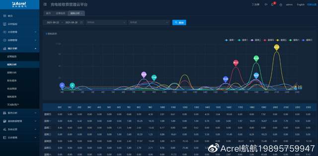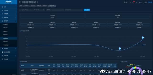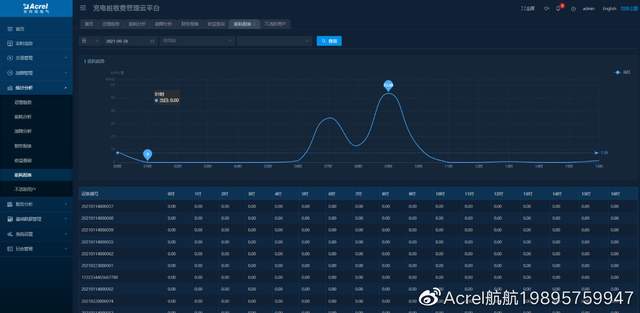 可查看指定时段充电站和充电桩的用电量,显示对应的能耗趋势图并进行同环比分析。