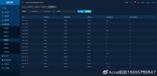可按日、月、年查看各个充电桩的用电量,可导出成excel表格。
