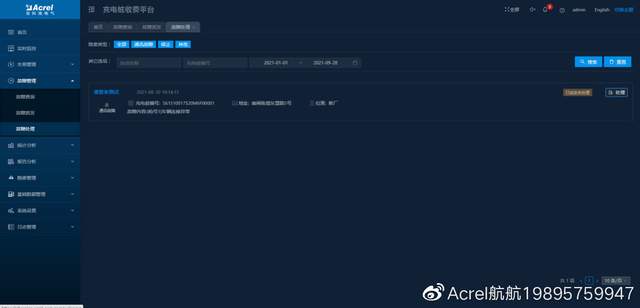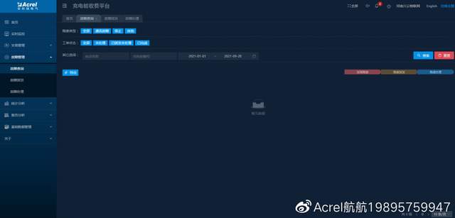 显示待派发的充电桩故障信息,派发之后生成工单,由运维人员到现场处理故障。