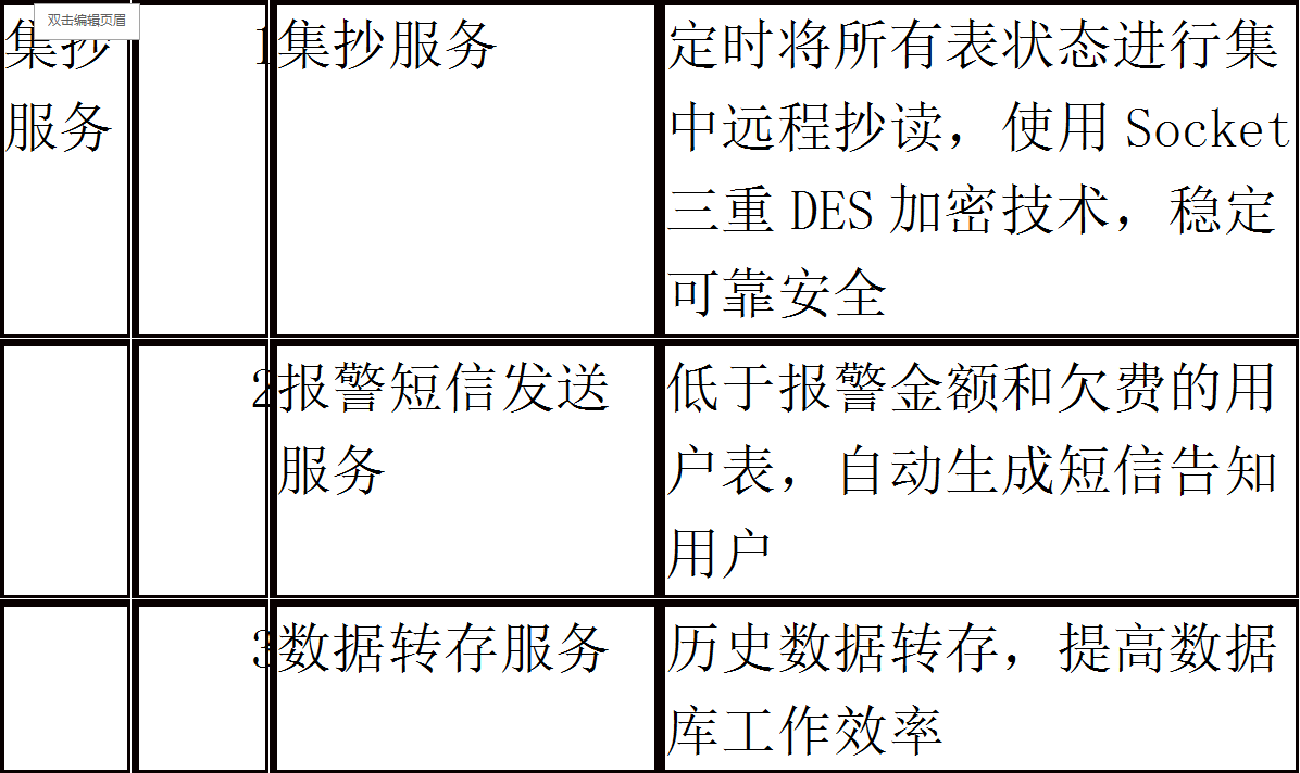 集中抄表服务程序包含三大模块,除了常年运行的定时对所有仪表进行集中远程抄表以外,还集成了报警短信发送服务,能将电费金额预警和欠费预警自动生成手机短信自发送给对应的商铺用户,该功能需要与硬件短信猫配合使用。