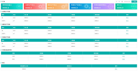 碳足迹管理:跟踪能源在输入、分配、消耗、生产各环节的碳排放情况。